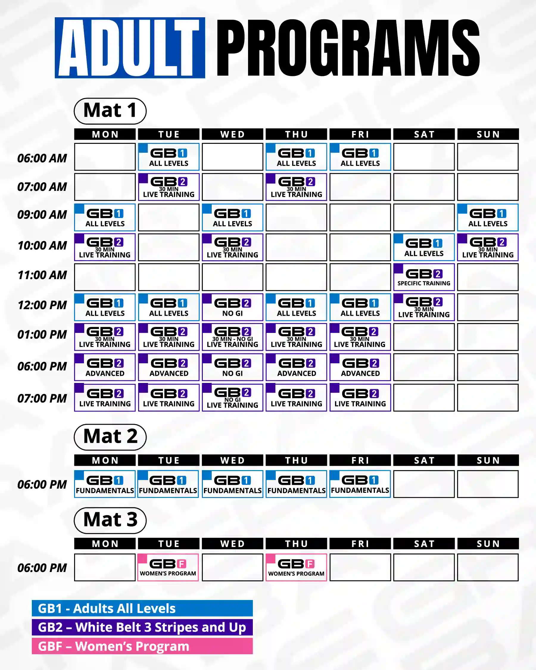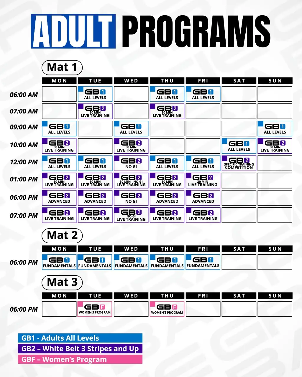 We offer a wide range of adult Jiu-Jitsu classes so students can choose the class that best suits their needs. We have three tiers of classes that address varying degrees of skill and knowledge.